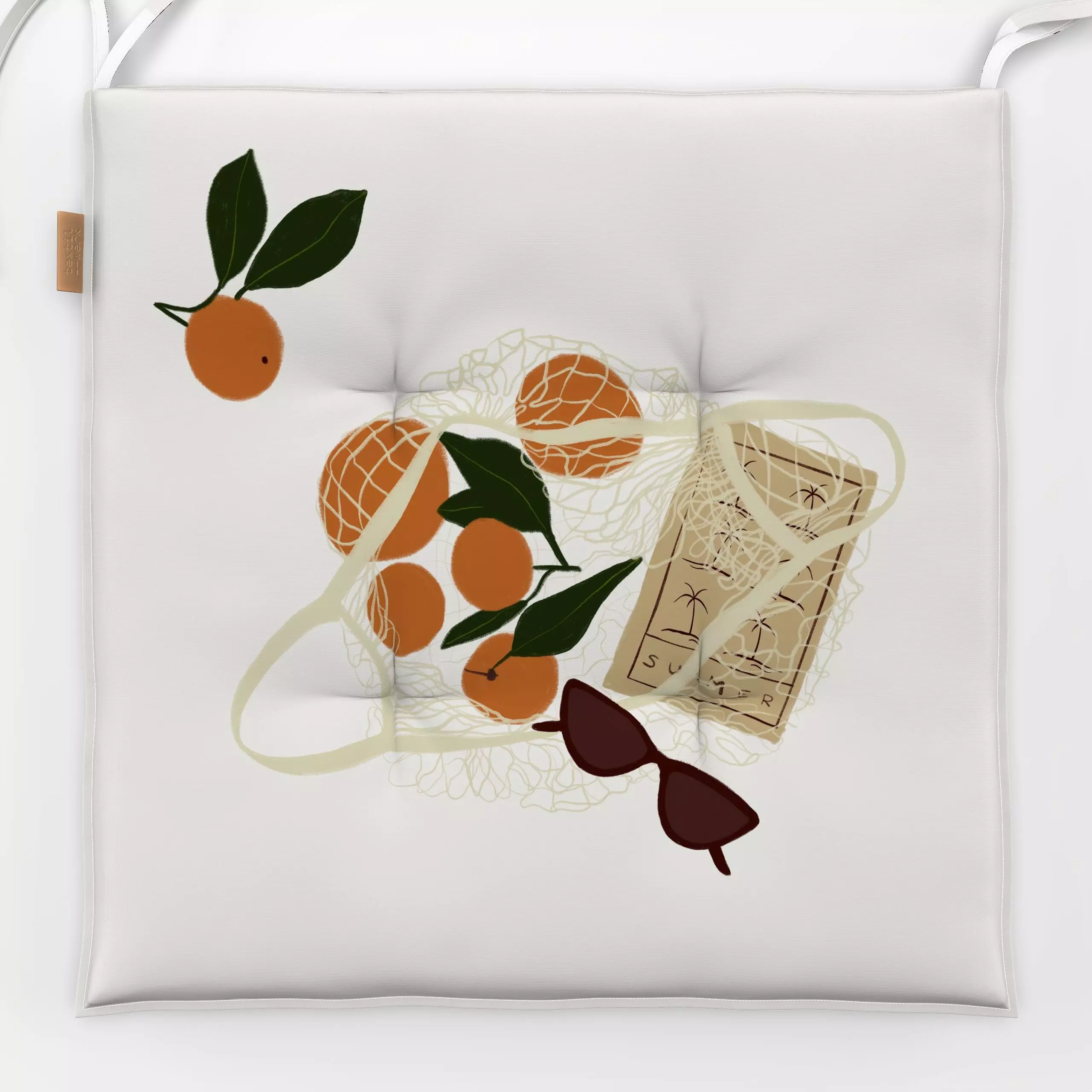 Sitzkissen Einkaufsnetz Orange - Sommer, Früchte - von „Sophie Augustin Illustration"; Strand, Sommer, mediterran, Sommerlic...