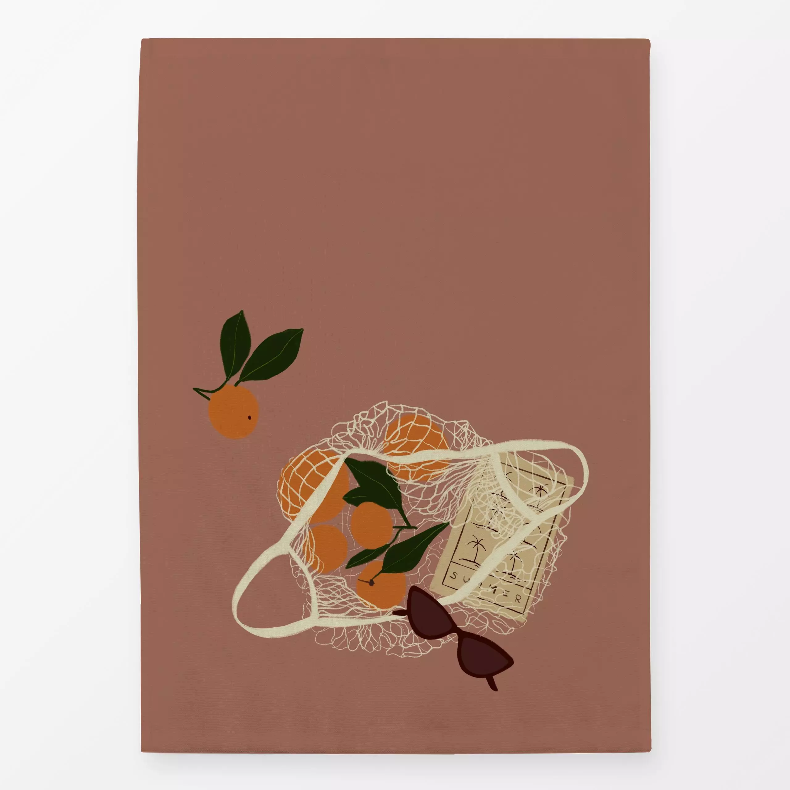 Geschirrtücher Einkaufsnetz Burned Sienna - Sommer, Früchte - von „Sophie Augustin Illustration"; Orange, Sommer, mediterran...