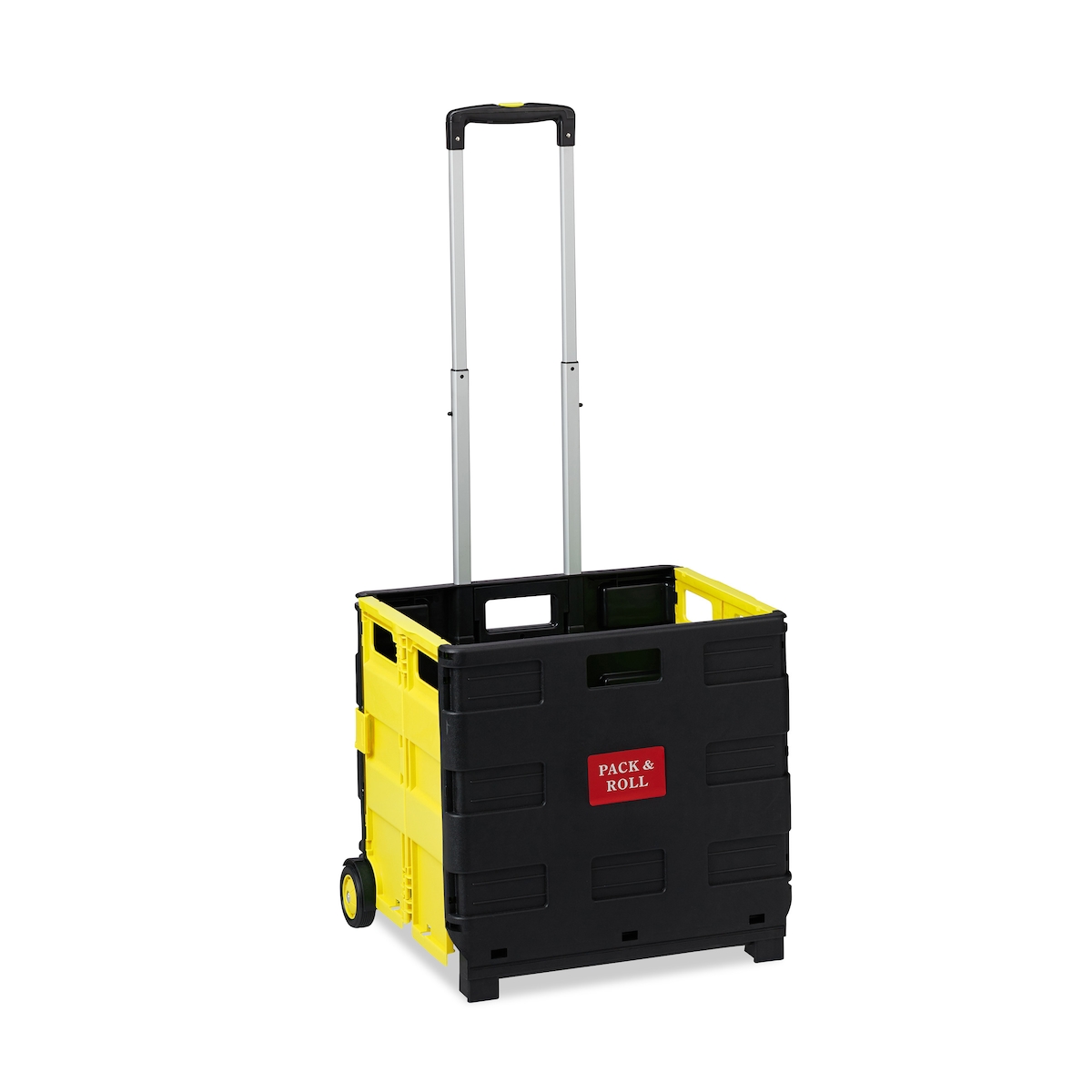Relaxdays Einkaufstrolley klappbar, Teleskop-Griff, 2 Gummi Rollen, bis 35 kg, Shopping Trolley, Aluminium, ABS, gelb