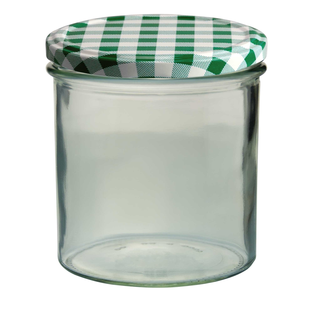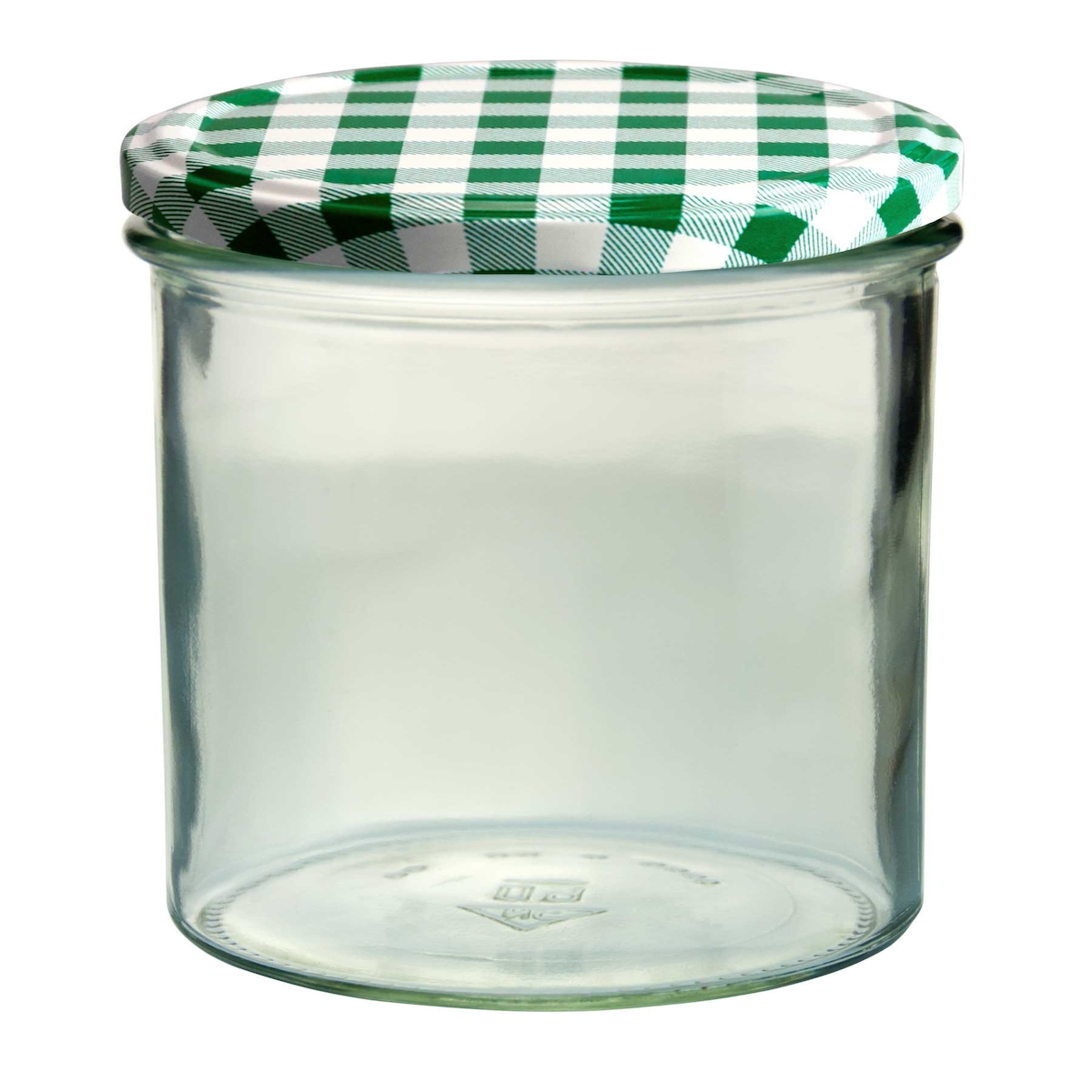 Einmachglas 540 ml ZYLINDER klar/transparent 20 Stück INKLUSIVE KARIERT HELLGRÜNEN DECKELN, Stück: 20
