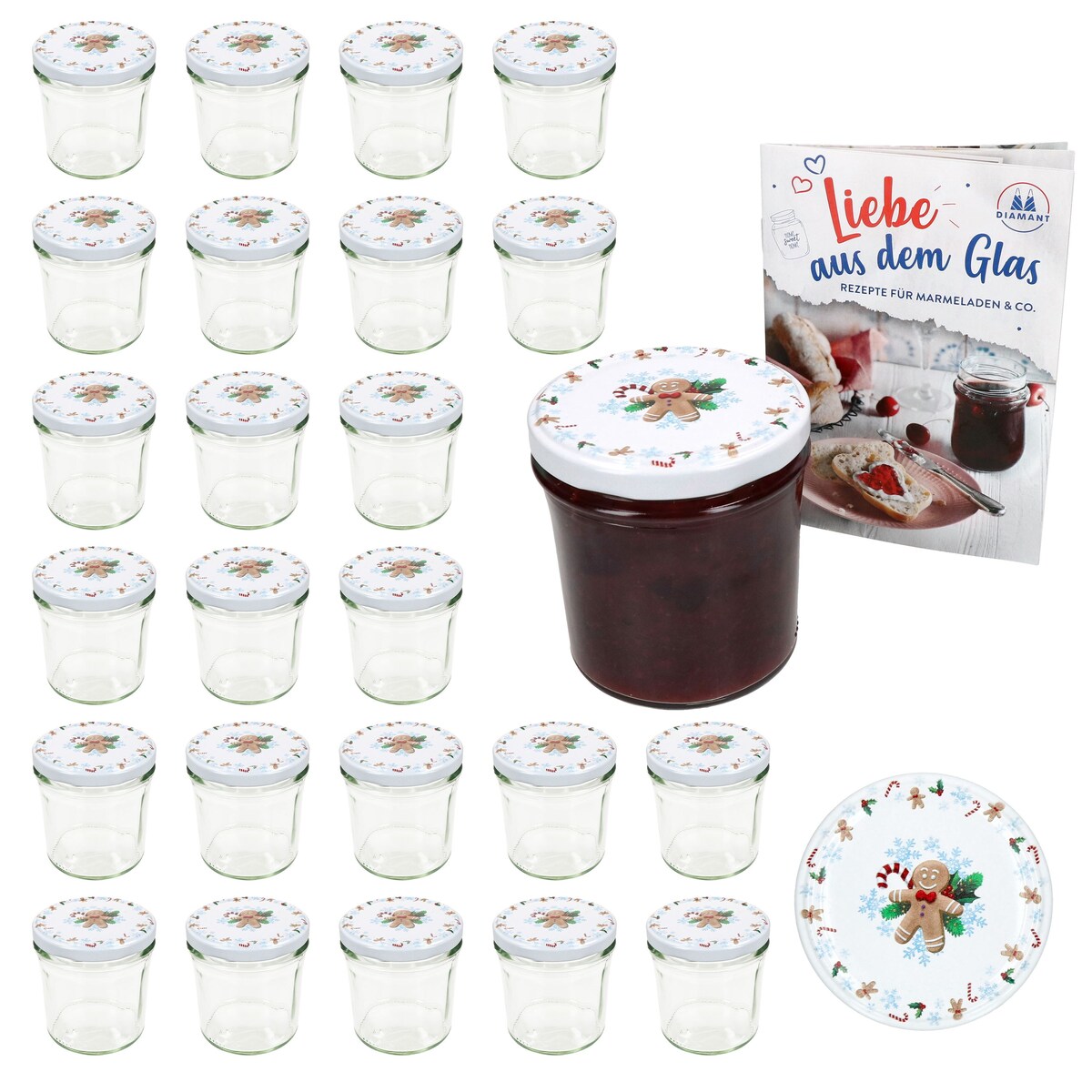 50er Set Sturzglas 125 ml Marmeladenglas Einmachglas Einweckglas To 66 weißer Deckel incl. Diamant-Zucker Gelierzauber Rezeptheft