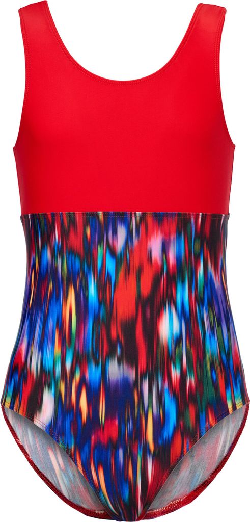 Teenager Mädchen Badeanzug einteilig UV Schutz 50 MS10-445 (Rot/Bunte, 158)