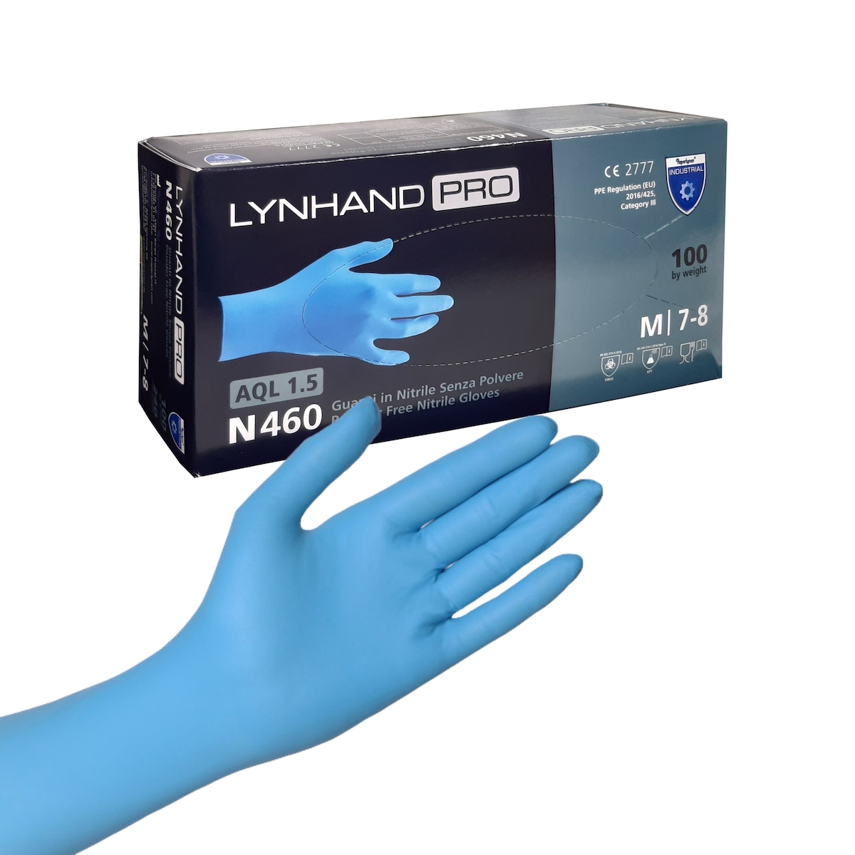 Nitril Einweghandschuh Lynhand Pro CAT. III, EN455 AQL 1.5 - puderfrei (100 Stück) 24cm M 1000 Stück