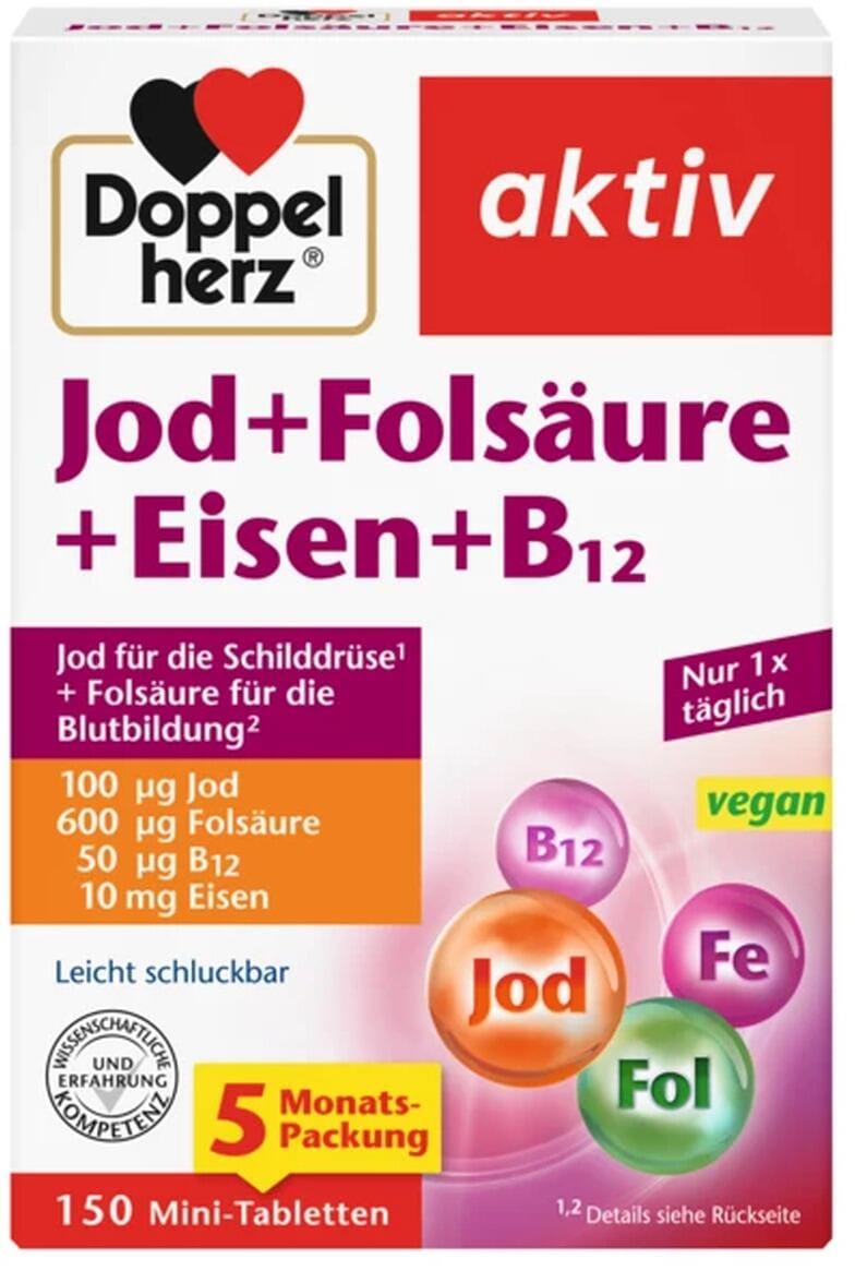 DOPPELHERZ Jod+Folsäure+Eisen+B12 Tabletten 150 St