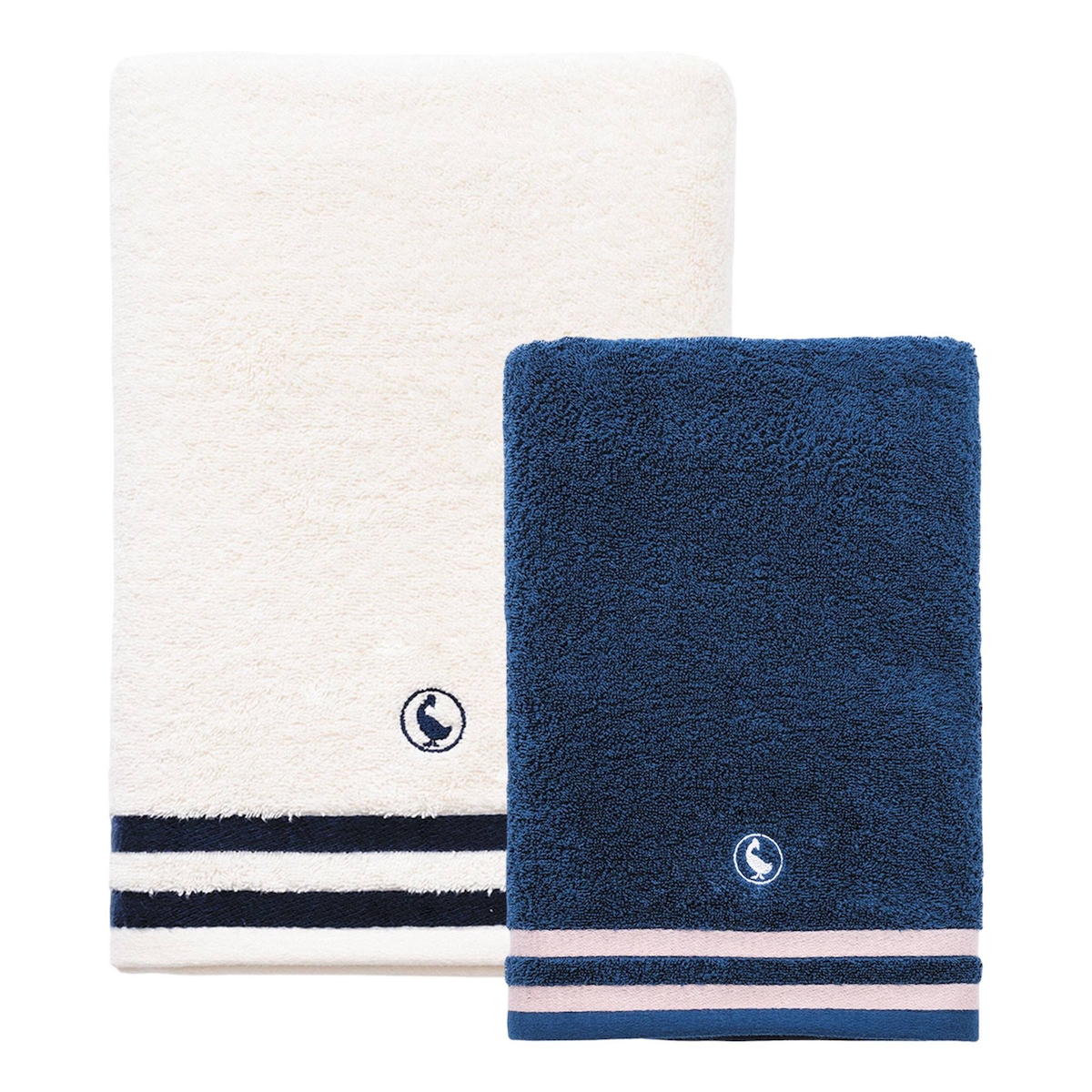 El Ganso - Set mit 2 Duschtüchern in Marineblau und Weiß, 70 x 140 cm, 100 % Baumwolle, 500 g/m²