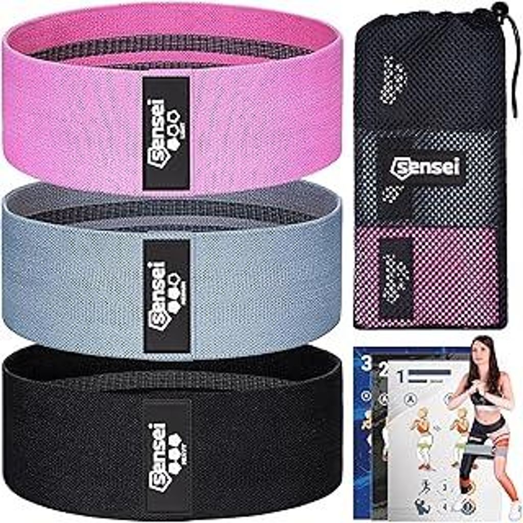 SENSEIFitnessbänder Set – 3 Elastic Stoff Trainingsbänder – Rutschfest Resistance Bands für Po, Beine, Pilates & Krafttraining