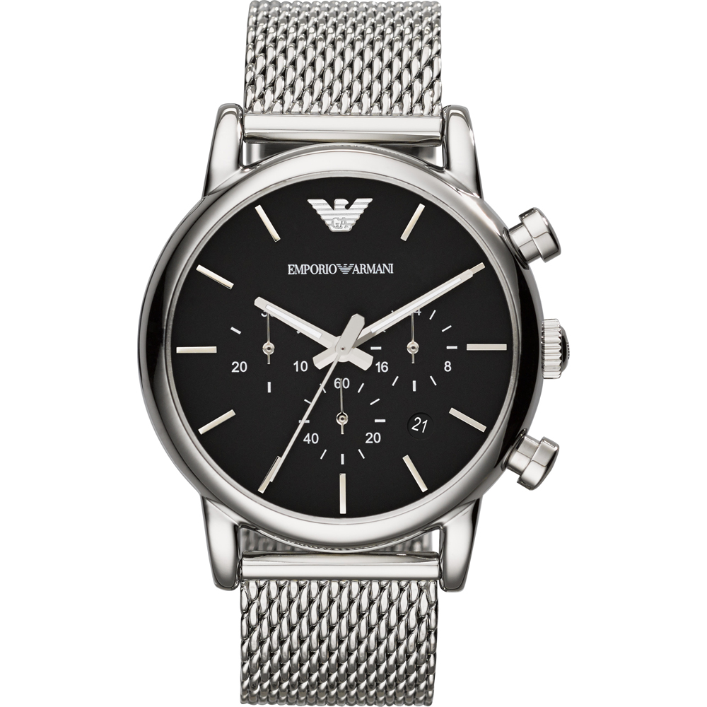 Elegante Herrenuhr der Marke Armani. Die Uhr hat ein Armband, das auch kleiner gemacht werden kann, das Gehäuse hat einen Durchmesser von 41 mm und