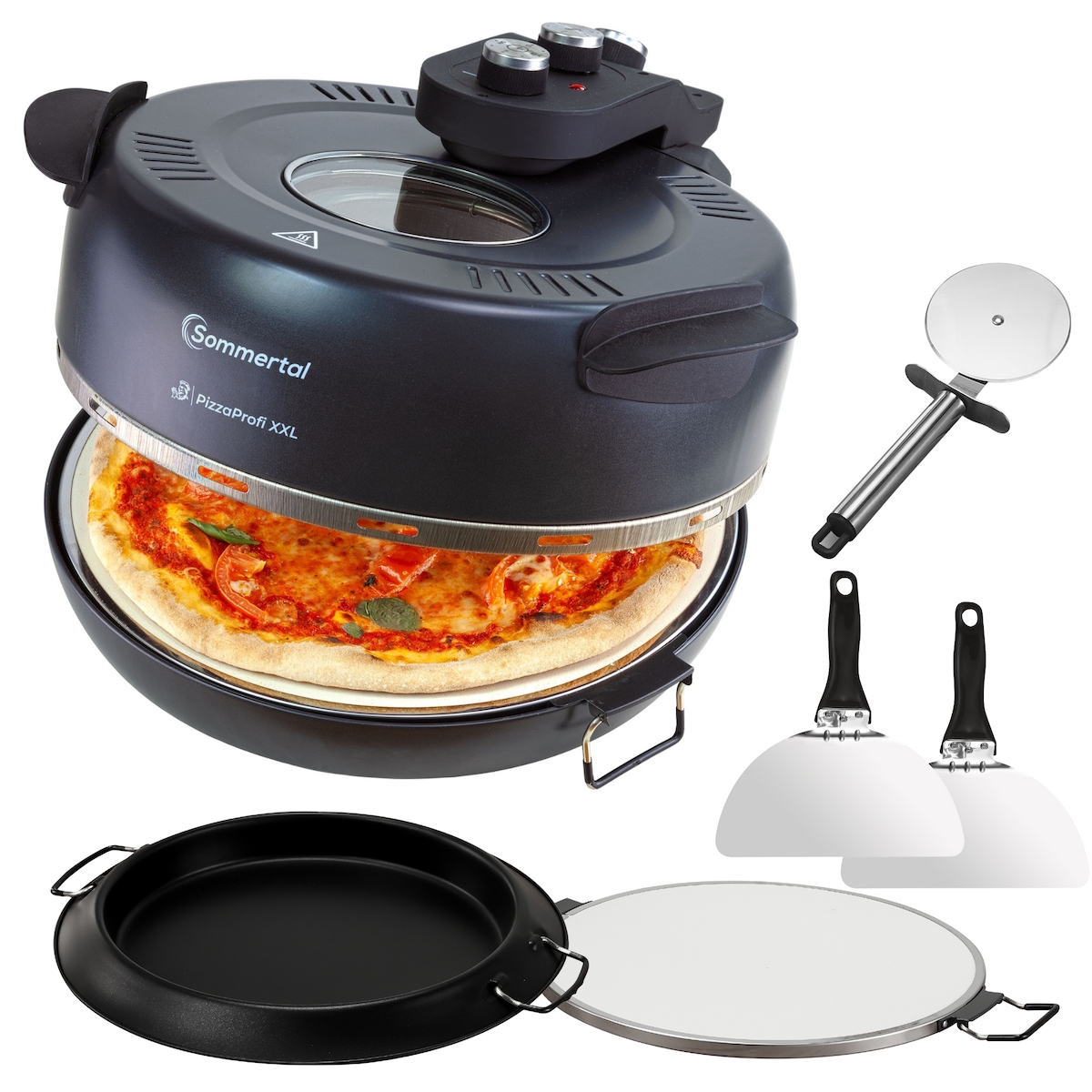 Sommertal PizzaProfi XXL Pizzaofen mit 39cm Steinplatte Pizza Ofen elektrisch, schnelle 3-Minuten Pizza, bis 380°C 5-teiliges Set mit Pfanneneinsatz