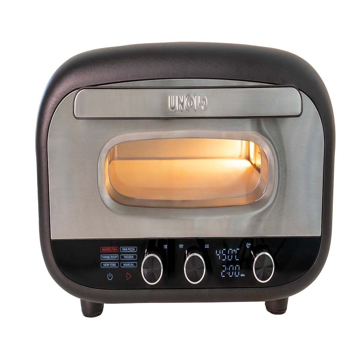 Unold 68806 Pizzaofen Alfredo, Elektrisch, 450 °C, inkl. Zubehör, energiesparend, 2 min Backzeit, Automatikprogramme, Profi Pizza, 1.700 Watt