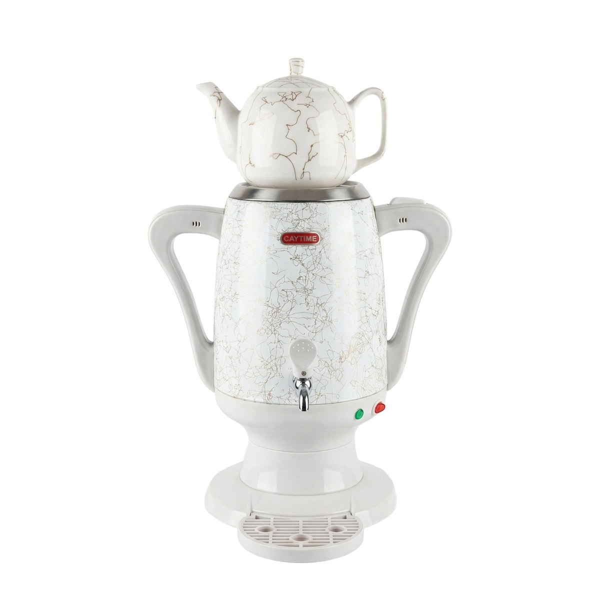 Caytime Samowar 3,5 L Semaver Edelstahl Teekocher mit weißer Keramikkanne / Elektrischer Samowar im modernen Design