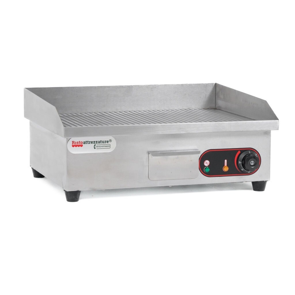 Ristoattrezzature Fry Top Elektro-Aufsatzgrill – professionell – Edelstahl – gerippte Platte – 3 kW – 55 x 45 x 23 h cm