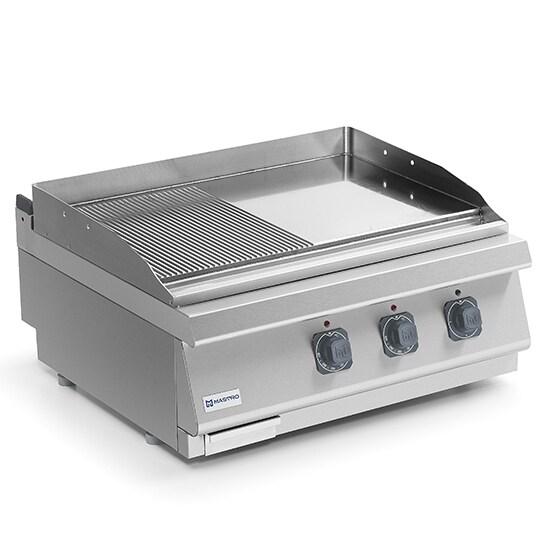 Mastro, Elektro-Grillplatte, Tischmodell, 1/2 glatte und 1/2 gerillte Platte, 800x730x300 mm