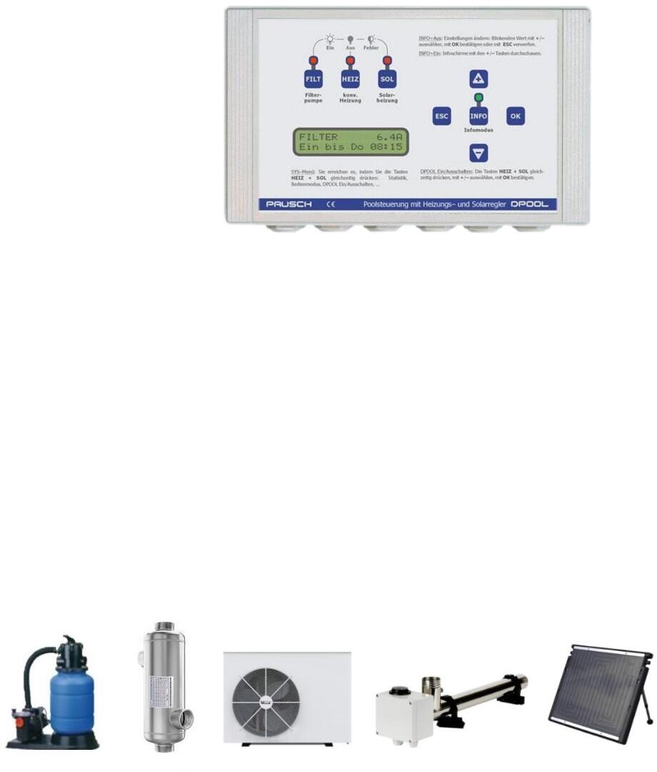 Pausch DPool Elektro-automatische Steuerung Filteranlage, Wärmetauscher, Wärmepumpe, Elektroheizung, Solaranlage, digital, 230V/400V, weiß