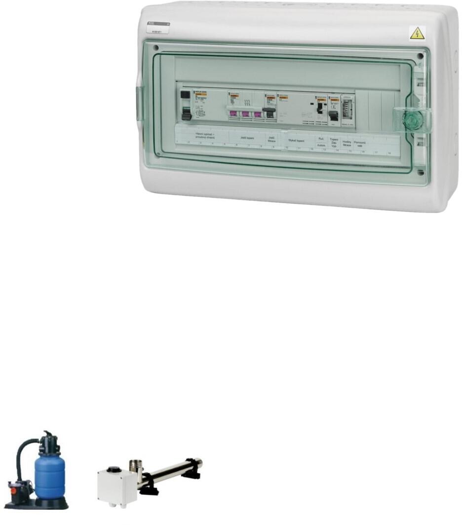 Vagner Pool F1E12SP3 Elektro-automatische Steuerung Filteranlage 400V, Beleuchtung, Elektroheizung 400V 12kW, Gegenstromanlage 400V, weiß