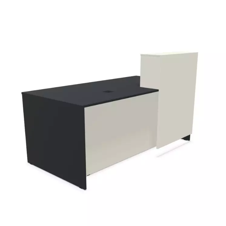 Empfangstheke Praxis Torino | Weiss/Schwarz | mit integriertem Kabelauslass und LED-Beleuchtung | Made in Germany | zurückgesetzter Frontplatte und