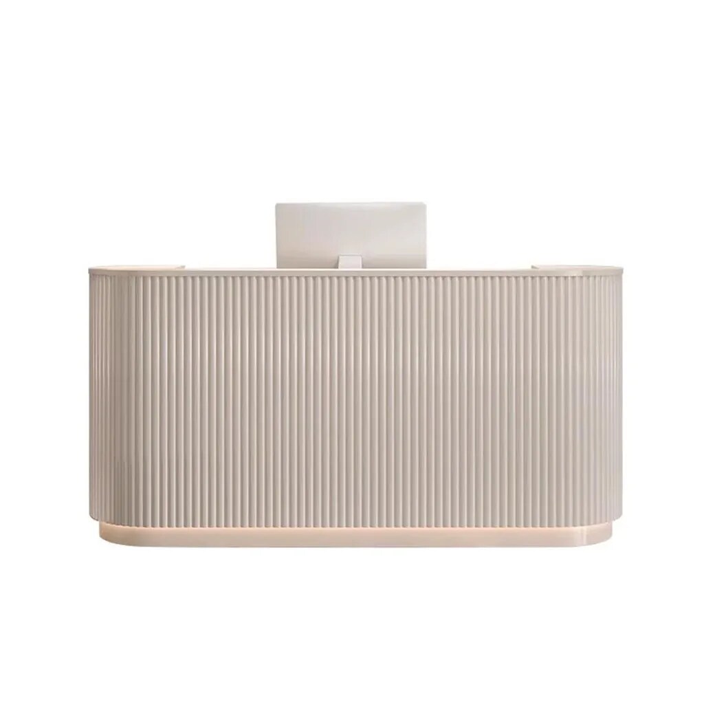 Empfangstresen mit Stauraum, vertikal gestreift, kleine Theke für Kosmetikstudios, Shops und Empfangshallen Beige 140×60×100cm【M Tiaowen 140】