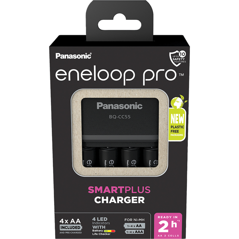 Panasonic Ladegerät Smart & Quick Charger BQ-CC55E + 4x eneloop Pro AA Akku (K-KJ55HCD40E)