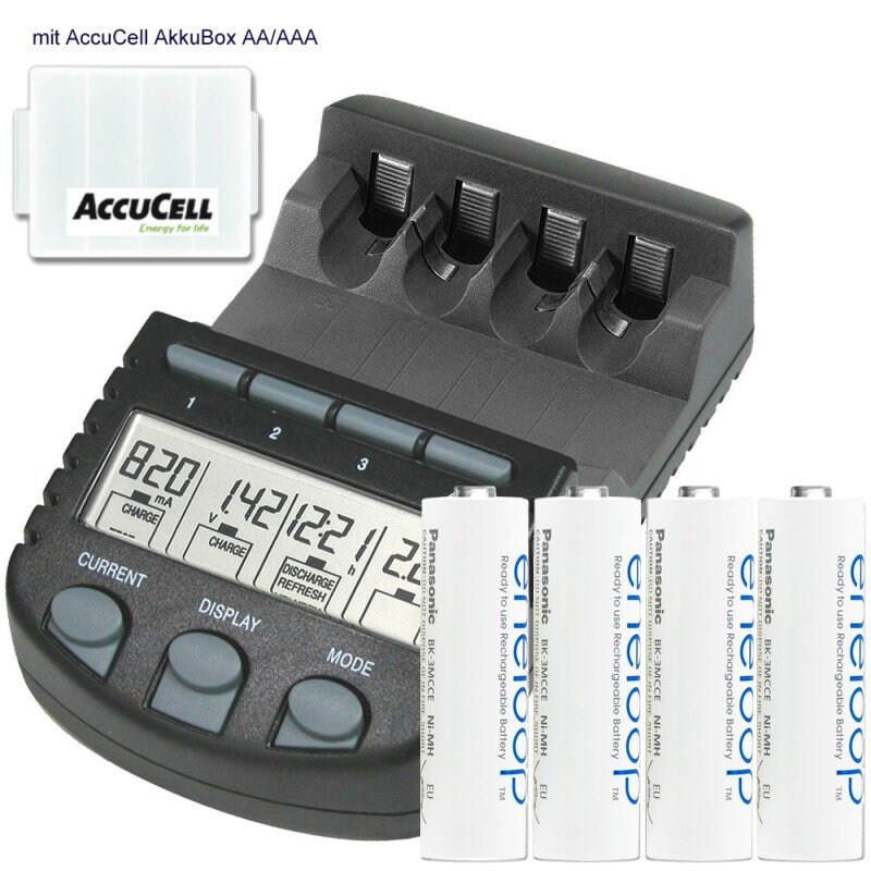 AccuCell Panasonic eneloop, Ready-to-Use NiMH Akku, AA Mignon, 4er Pack und LCD Schnell-Ladegerät für NiMH und Li-Ion Akku