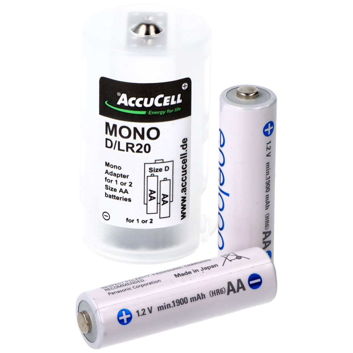 AccuCell Adapter D, Mono, LR20 und Panasonic eneloop 2-Pack BK-3MCDE/2BE Akku NiMH, Mignon, AA, HR06, 1.2V und 2000mAh