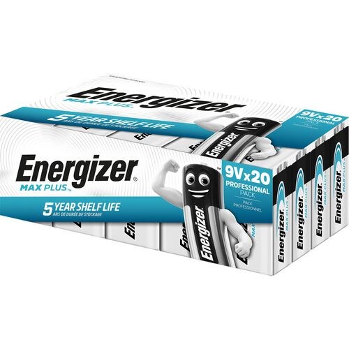 Energizer 9 V Alkali-Batterien Max Plus 6LR61, 20 Stück