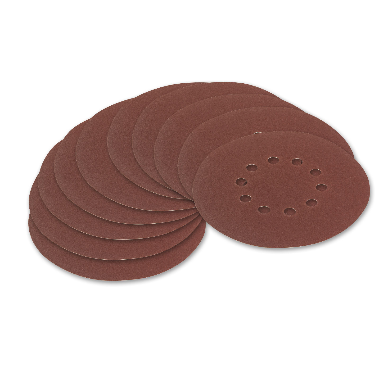 Schleifscheiben 225mm P180, 10er Set, Klett, für Exzenterschleifer, Siliciumcarbid-Korn, für Stahl, Holz, Kunststoff, Entgraten, Entrosten, Lochbild