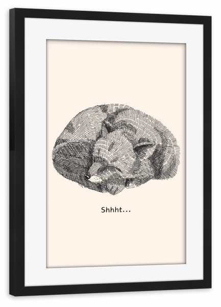 Poster mit Rahmen schwarz "Psst!" artboxONE - Für Kinder,Tiere - Lesie,Baby,Schlaf,Winterschlaf,Fuchs,Fox,Waldtier,Psst,Pssst,Shhht,Ruhe,Entspannung