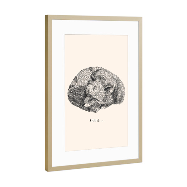 Poster mit Rahmen Gold "Psst!" artboxONE - Für Kinder,Tiere - Lesie,Baby,Schlaf,Winterschlaf,Fuchs,Fox,Waldtier,Psst,Pssst,Shhht,Ruhe,Entspannung
