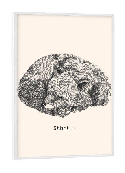 Poster mit Rahmen weiß "Psst!" artboxONE - Für Kinder,Tiere - Lesie,Baby,Schlaf,Winterschlaf,Fuchs,Fox,Waldtier,Psst,Pssst,Shhht,Ruhe,Entspannung