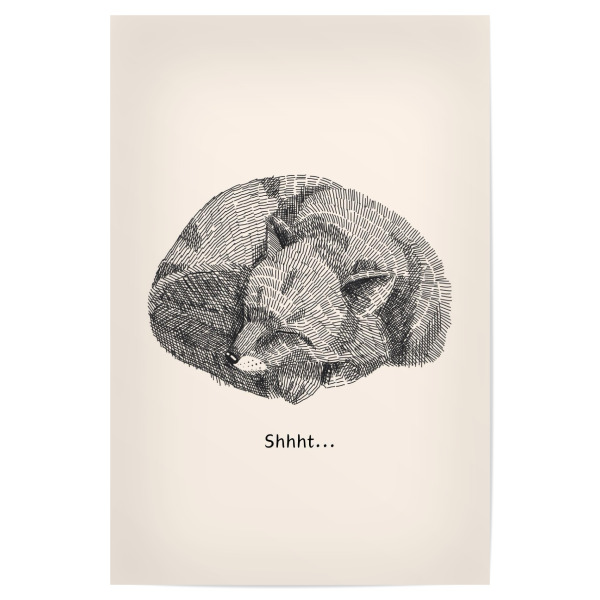 Poster "Psst!" artboxONE - Für Kinder,Tiere - Lesie,Baby,Schlaf,Winterschlaf,Fuchs,Fox,Waldtier,Psst,Pssst,Shhht,Ruhe,Entspannung