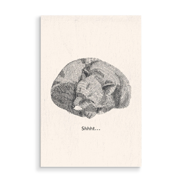 Holzbild "Psst!" artboxONE - Für Kinder,Tiere - Lesie,Baby,Schlaf,Winterschlaf,Fuchs,Fox,Waldtier,Psst,Pssst,Shhht,Ruhe,Entspannung