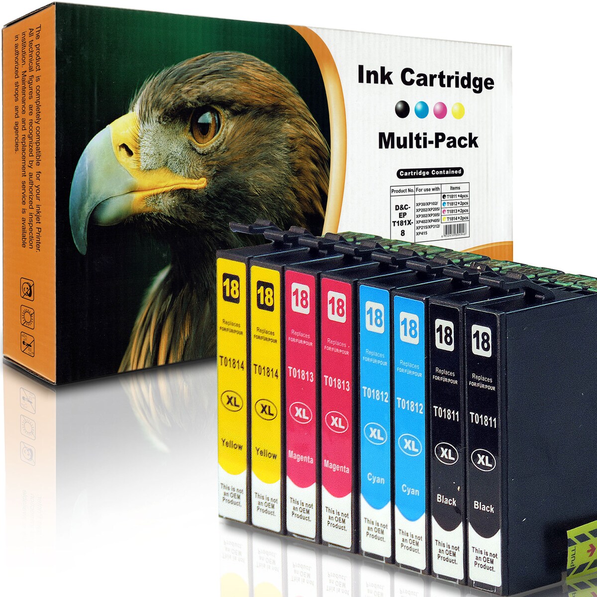 D&C 8 Druckerpatronen Set Tinte kompatibel für Epson Expression Home XP-100, 102, 200, 202, 205, 210, 212, 215, 225, 300, 30, 302, 305, 310, 312, 313,