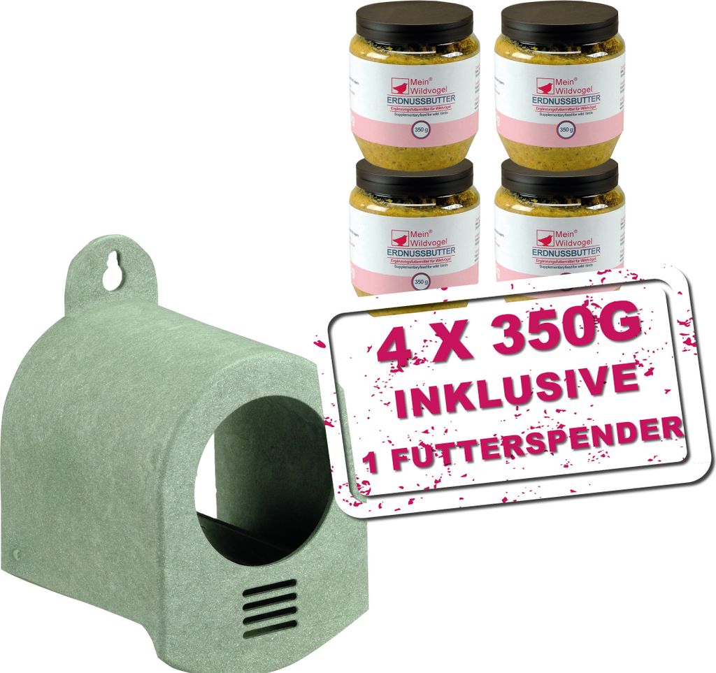 MeinWildvogel Erdnussbutter und Spender Starter Set, 1x Futterspender für Wildvögel und 4x Wildvogel Erdnussbutter 350g, 100% recycling