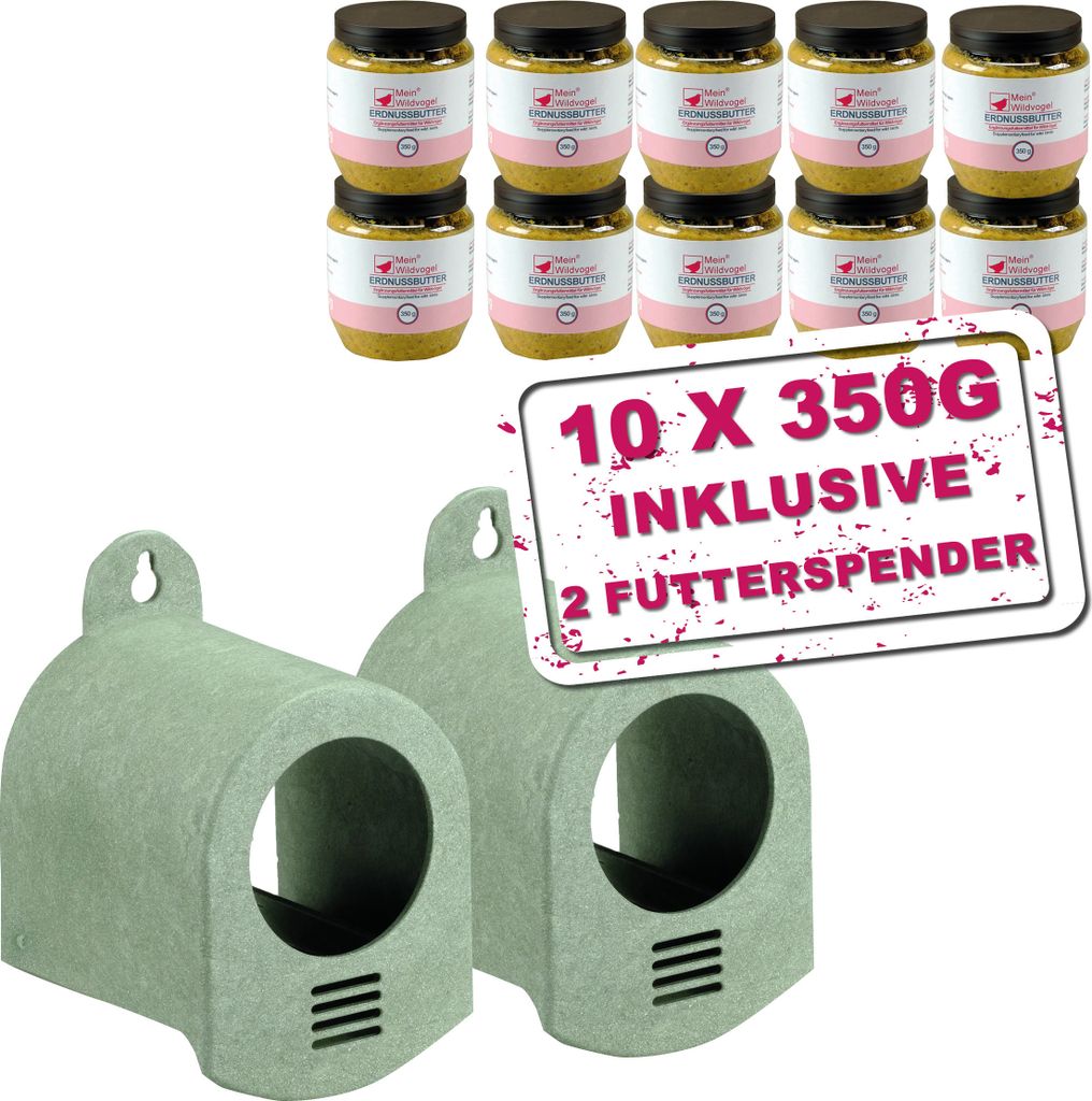 MeinWildvogel Erdnussbutter und Spender Starter Set, 2x Futterspender für Wildvögel und 10x Wildvogel Erdnussbutter 350g, Recycelt, Nährstoffreich