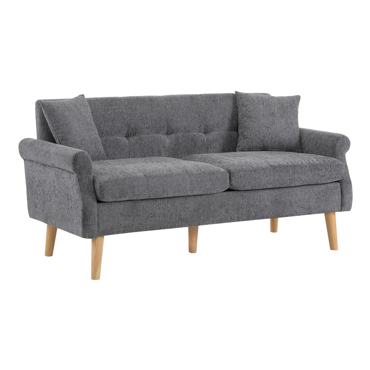 2-Sitzer Sofa Chenille gepolstert ergonomisch mit weichen Kissen Stauraum modernes Wohnzimmer Möbel 162x74x77 Grau