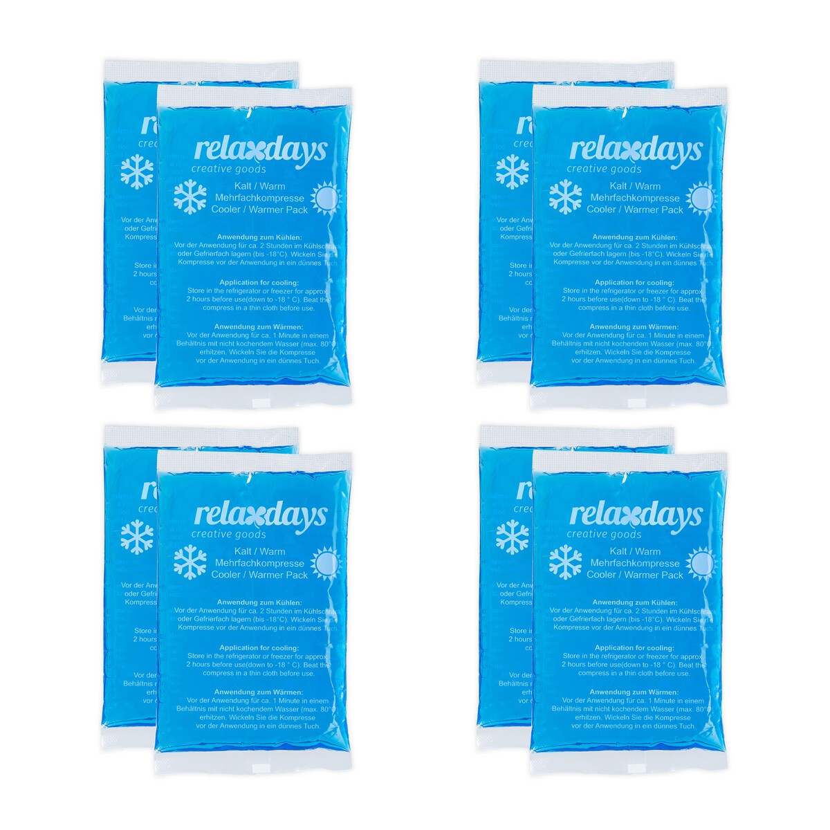 Relaxdays Kühlpads, 8er Set, Kalt-Warm-Kompressen, 9 x 15 cm, Erste Hilfe, wiederverwendbare Gelkühlkompressen, blau