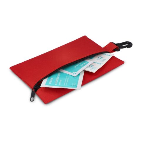 Werbeartikel Alexander 30-teiliges Erste-Hilfe-Set mit wasserfester Tasche – rot – mit Logo bedruckt
