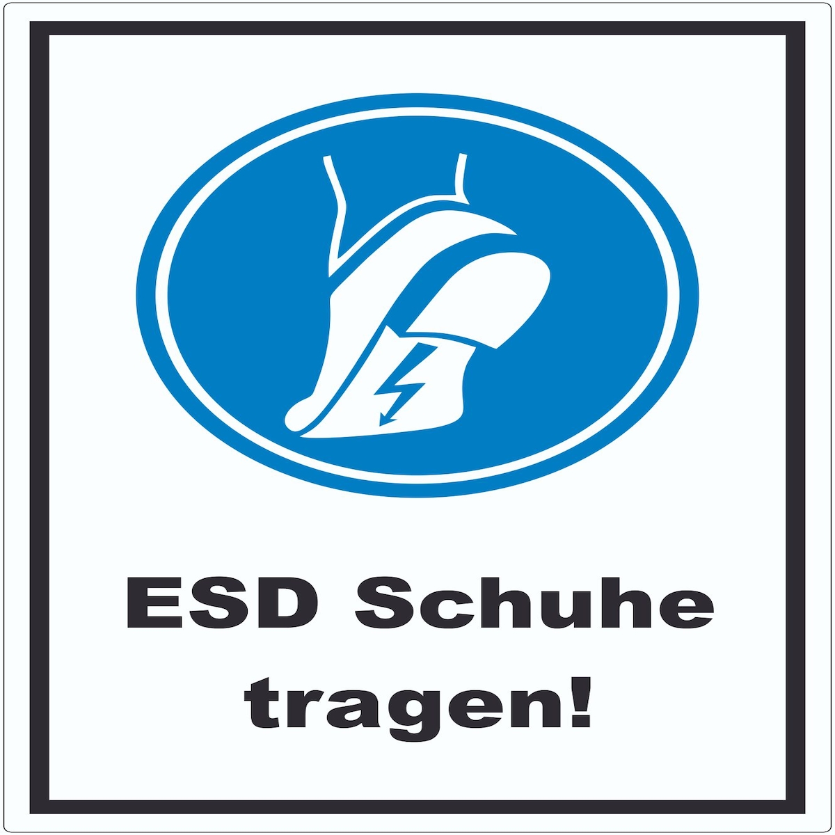 ESD Schuhe tragen Aufkleber Fußschutz gegen elektrostatische Aufladung A4 (210x297mm)