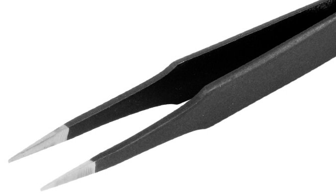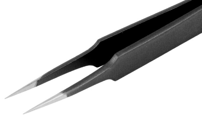 ESD Pinzette, mit sehr feinen und scharfen Spitzen (für SMD Anwendung), 110 mm
