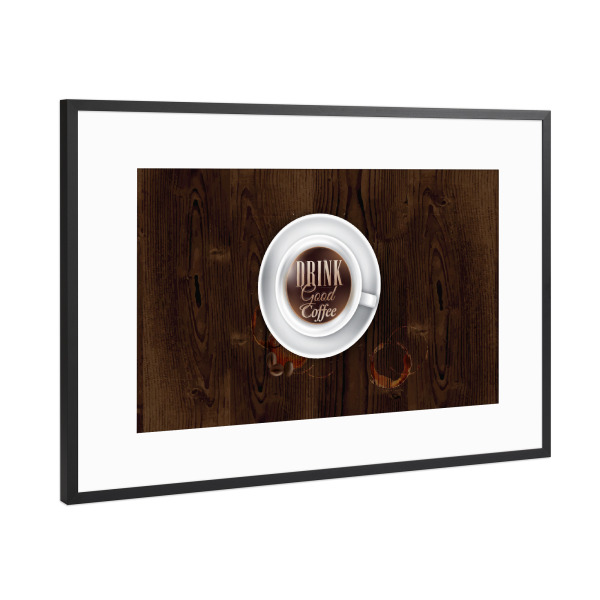 Poster mit Rahmen Schwarz (Metallic) "Coffee cup dark wood" artboxONE - Essen & Trinken - Cup,Coffee,Dark,Wood,Espresso,Hot,Tasty,Kaffee,Tasse