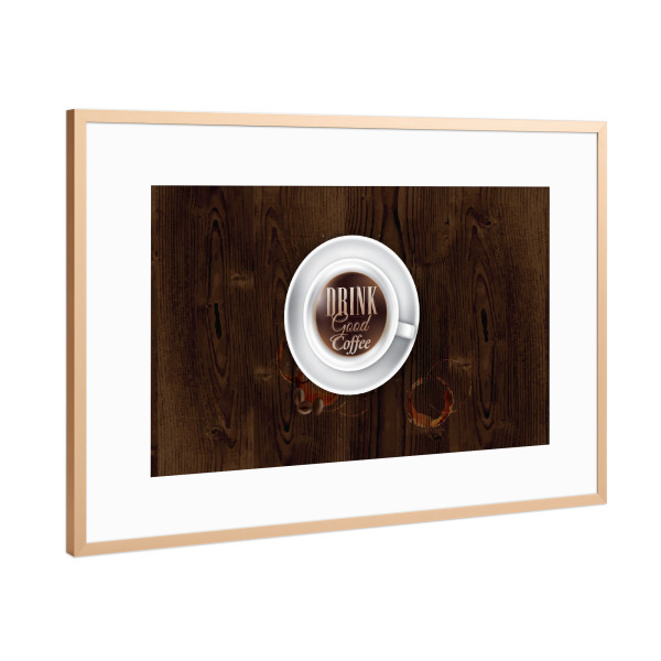 Poster mit Rahmen Kupfer "Coffee cup dark wood" artboxONE - Essen & Trinken - Cup,Coffee,Dark,Wood,Espresso,Hot,Tasty,Kaffee,Tasse
