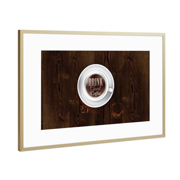 Poster mit Rahmen Gold "Coffee cup dark wood" artboxONE - Essen & Trinken - Cup,Coffee,Dark,Wood,Espresso,Hot,Tasty,Kaffee,Tasse