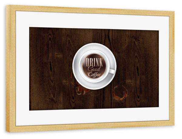 Poster mit Rahmen kiefer "Coffee cup dark wood" artboxONE - Essen & Trinken - Cup,Coffee,Dark,Wood,Espresso,Hot,Tasty,Kaffee,Tasse
