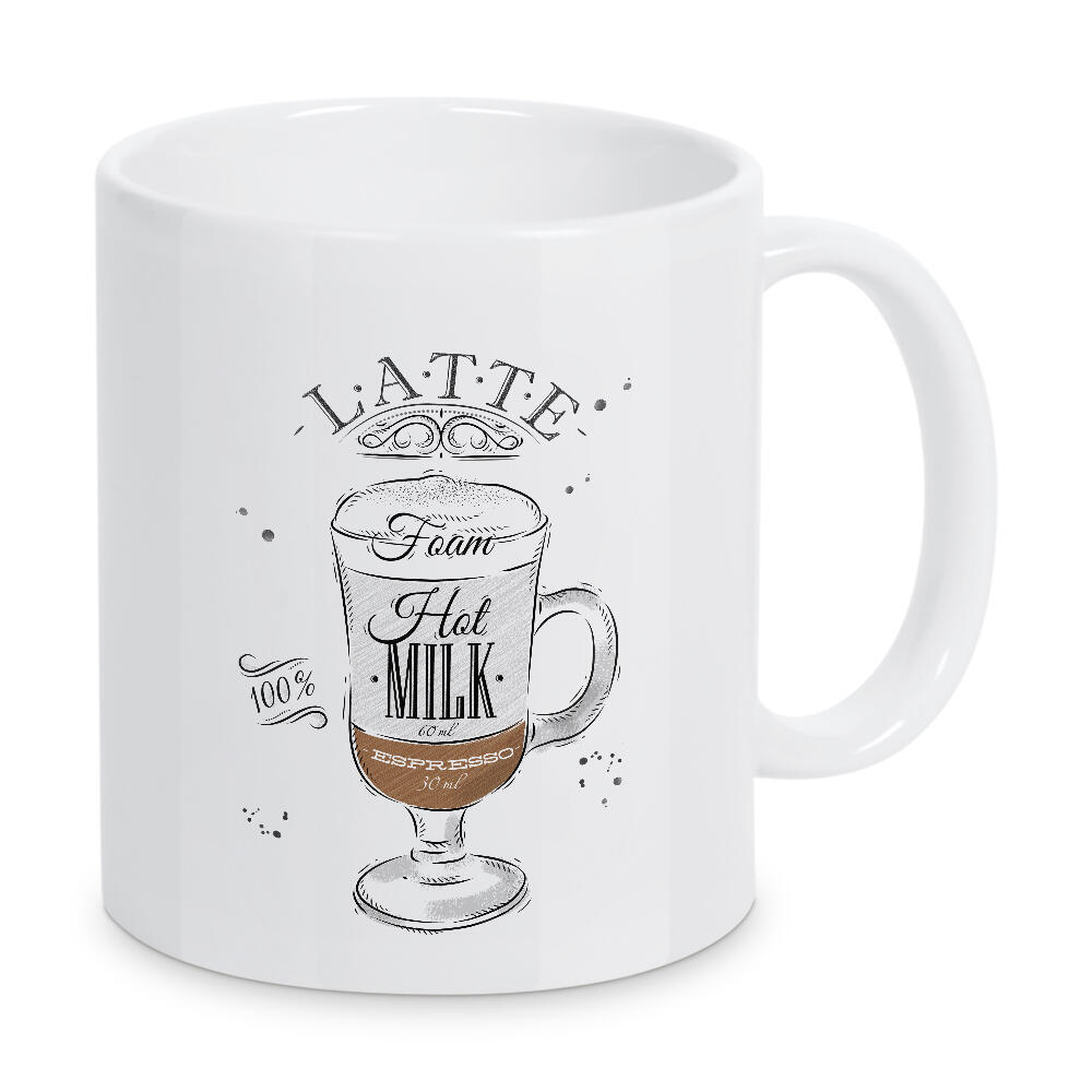 Tasse "Coffee latte wood" artboxONE - Essen & Trinken,Schwarzweiß - Latte,Coffee,Cafe,Drink,Cup,Retro,Vintage,Ingredients,Caffeine,Espresso