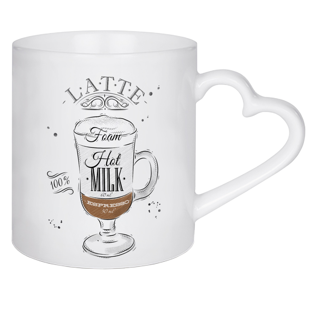 Herztasse "Coffee latte wood" artboxONE - Essen & Trinken,Schwarzweiß - Latte,Coffee,Cafe,Drink,Cup,Retro,Vintage,Ingredients,Caffeine,Espresso
