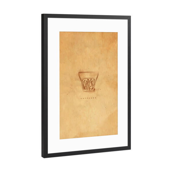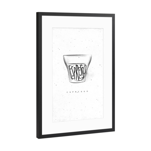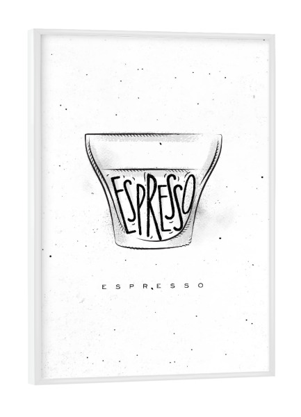 Poster mit weißem Rahmen "Espresso Cup lettering" artboxONE - Schwarzweiß,Essen & Trinken / Alkohol