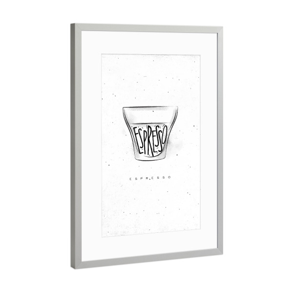 Poster mit Rahmen Silber "Espresso Cup lettering" artboxONE - Schwarzweiß,Essen & Trinken / Alkohol