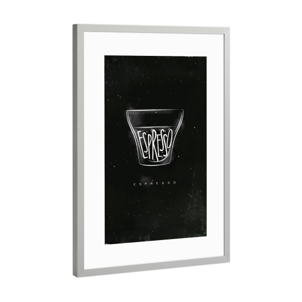 Poster mit Rahmen Silber "Espresso cup chalk" artboxONE - Essen & Trinken,Schwarzweiß
