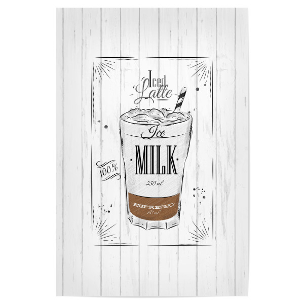Poster "Coffee iced latte wood" artboxONE - Essen & Trinken,Schwarzweiß - Ice,Latte,Coffee,Cafe,Drink,Cup,Caffeine,Espresso