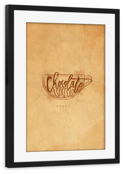 Poster mit Rahmen schwarz "Mocha cup craft" artboxONE - Essen & Trinken - Coffee,Vintage,Cafe,Cup,Retro,Espresso,Milk,Mocha