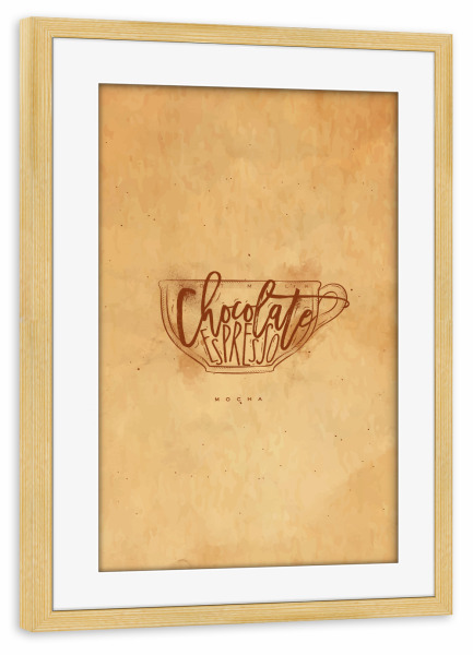 Poster mit Rahmen kiefer "Mocha cup craft" artboxONE - Essen & Trinken - Coffee,Vintage,Cafe,Cup,Retro,Espresso,Milk,Mocha